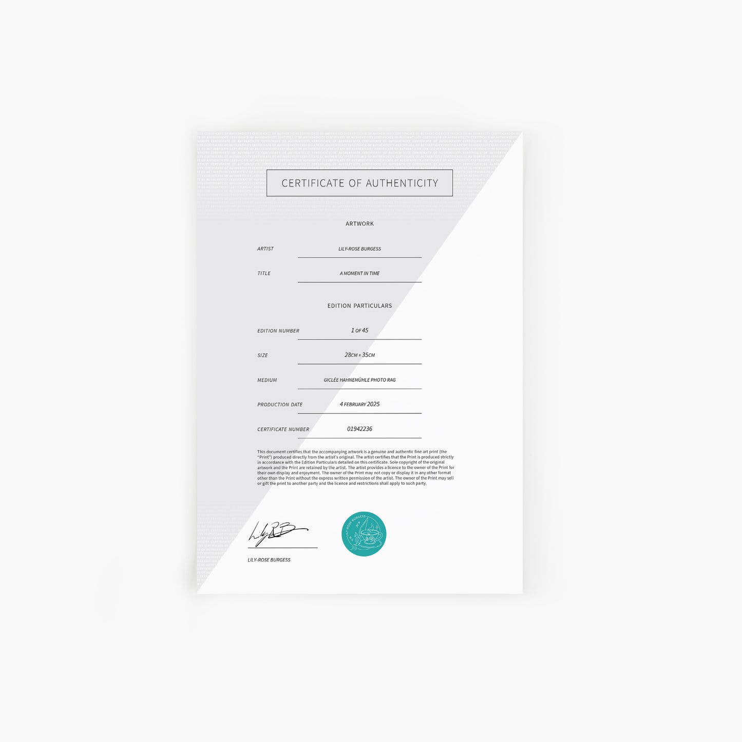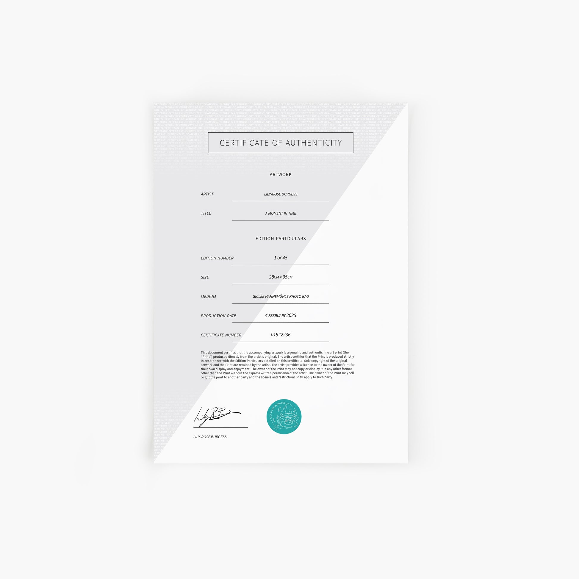 - Presented on acid-free, archival cotton PhotoRag Giclée paper from Hahnemuhle