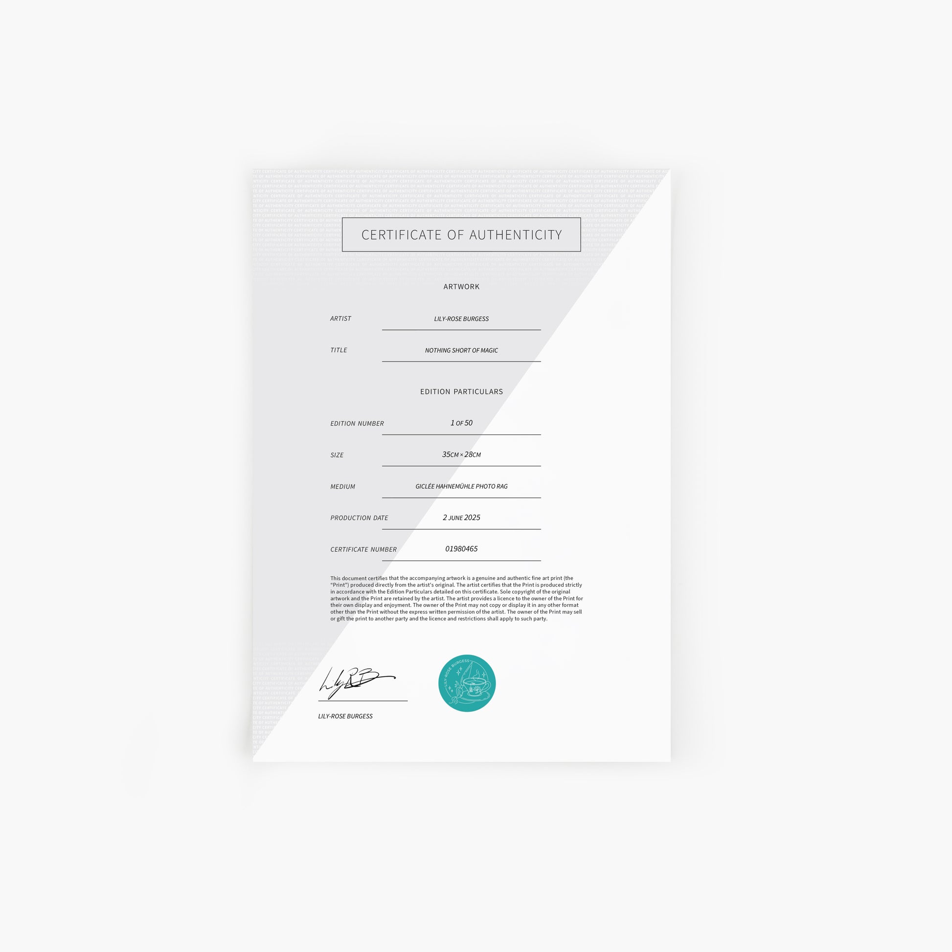 - Presented on acid-free, archival cotton Photo Rag Giclée paper from Hahnemuhle