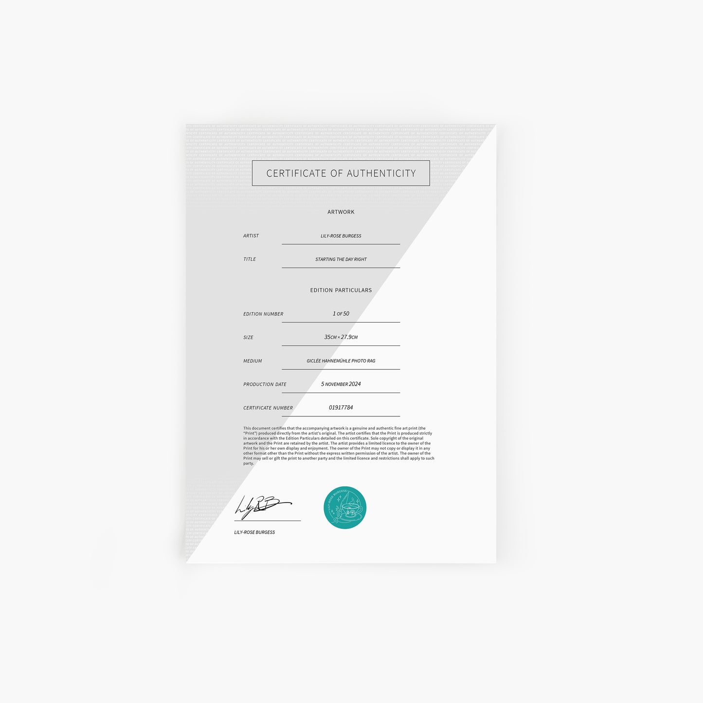 - Presented on acid-free, archival cotton Photorag Giclée paper from Hahnemühle